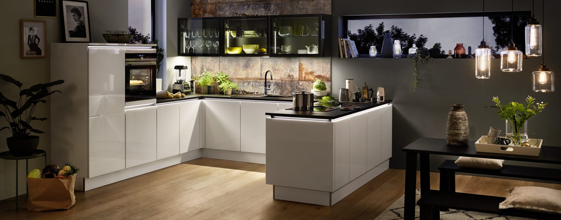 Sia la luce. L’illuminazione in cucina non solo crea un’atmosfera familiare o aggiunge affermazioni, ma anche – più importante – ci fa sentire bene. La moderna tecnologia LED produce una luce delicata che può anche essere abbinata al particolare umore o momento della giornata. Il tirante illuminato MatrixART, ad esempio, crea un’atmosfera speciale e sottolinea le linee della cucina con un effetto piacevole e sorprendente. Un’illuminazione a parete integrata evoca anche un ambiente caldo e invitante!
