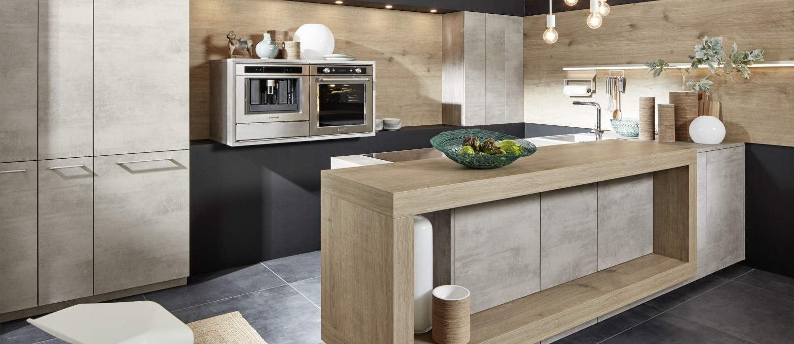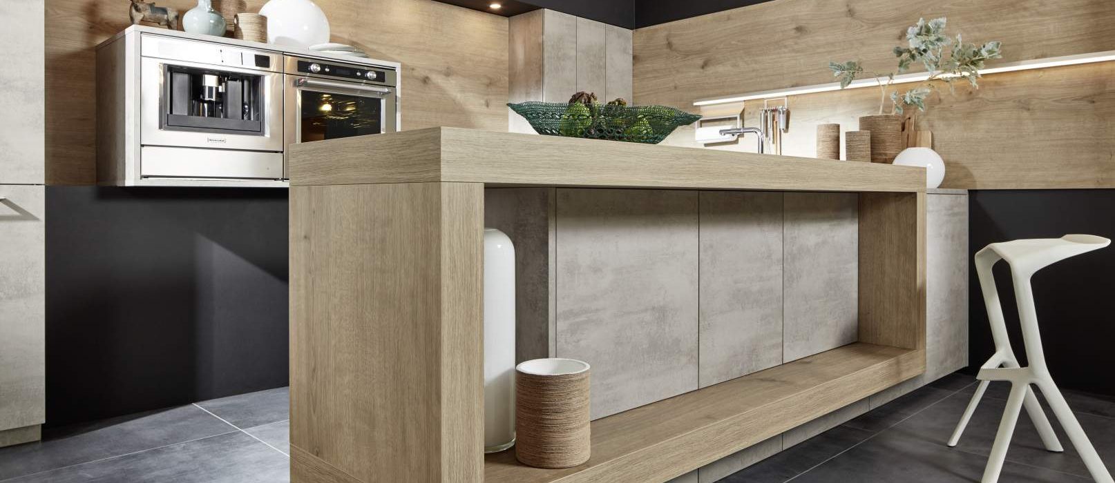 Il cemento STONE con l’ambiente circostante in leccio è una grande prova dell’implementazione di successo nella nostra cucina. Il look in cemento naturale non si distingue solo dall’esterno, ma continua anche dall’interno, armoniosamente arrotondato per coerenza. E le pietre espressive sono il filo conduttore di tutta la cucina: dallo splashback all’elemento contatore come parte dell’isola.