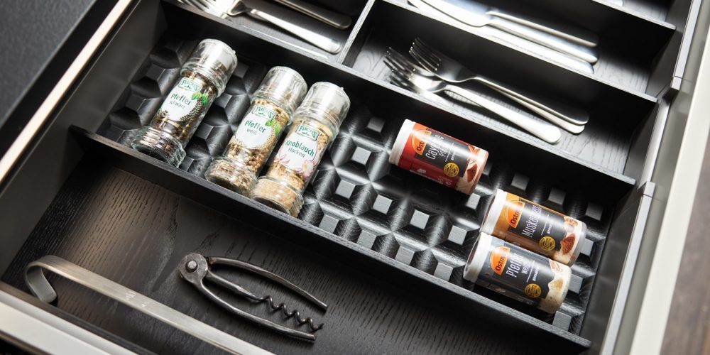 Organizzazione perfetta per contenitori per spezie grazie all'inserto per spezie.
